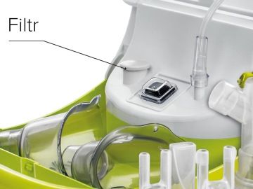 Inhalátor je vybavený vysoce výkonným pístovým kompresorem, který umožňuje nepřetržitý provoz. Díky tomu je přístroj ideální pro každodenní inhalaci více členů domácnosti a uplatní se i při chronických obtížích, které vyžadují častější inhalaci.
