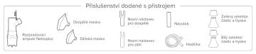 Výměnou plastového kloboučku a selektoru částic v rozprašovací ampuli můžete upravovat velikost vytvářených částic léčiva a zvolit tak, kterou část dýchacích cest budete během inhalace ošetřovat.